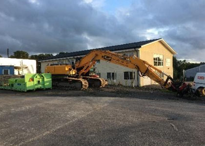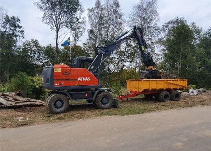 16-ton Miljömaskin med Panolin olja. Alla tänkbara redskap samt kärra med tipp.